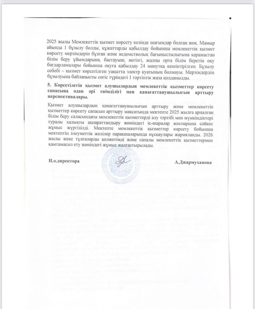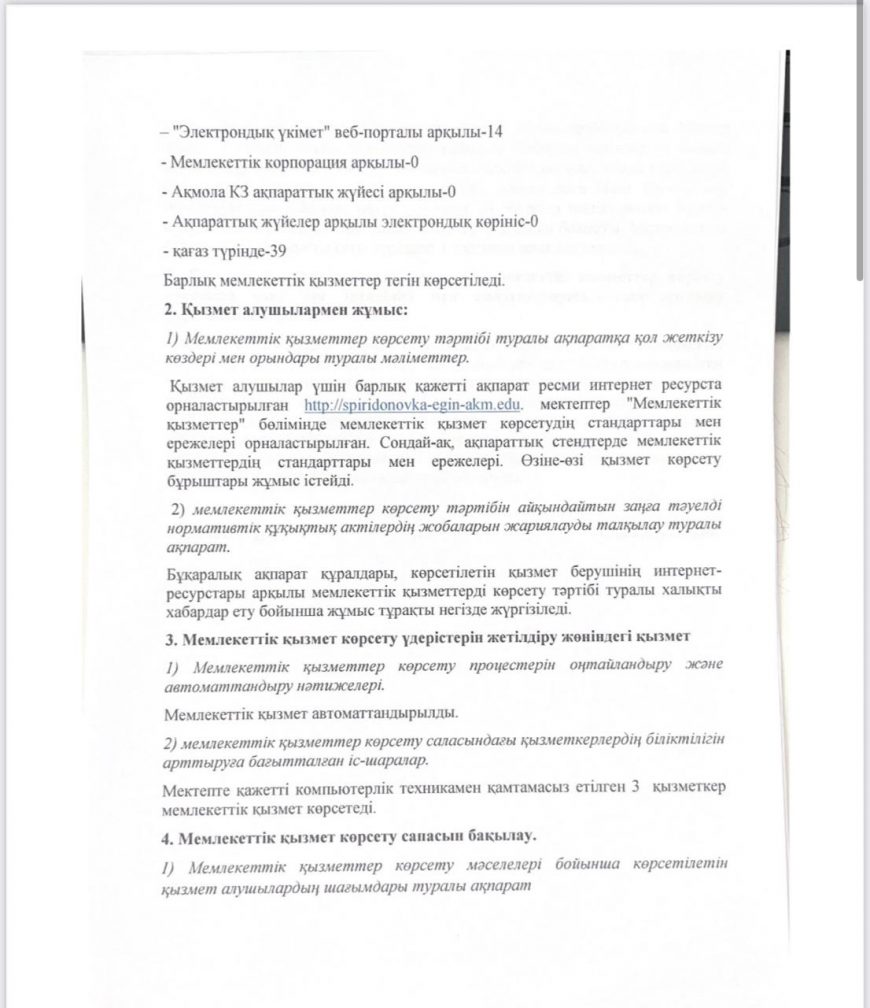 Ақмола облысы білім басқармасының Егіндікөл ауданы бойынша білім бөлімінің Спиридоновка ауылының жалпы білім беретін мектебі КММ 2025 жылғы мемлекеттік қызметтер саласындағы қызметі туралы жария талқылауға арналған есеп