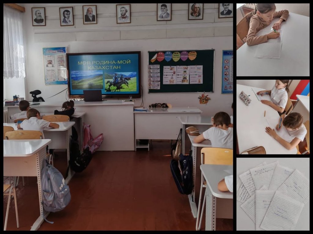 Бастауыш сыныптар онкүндігі аясында 14 қазанда 3-4 сыныптарда Менің Отаным - менің Қазақстаным тақырыбында шығармалар байқауы өтті
