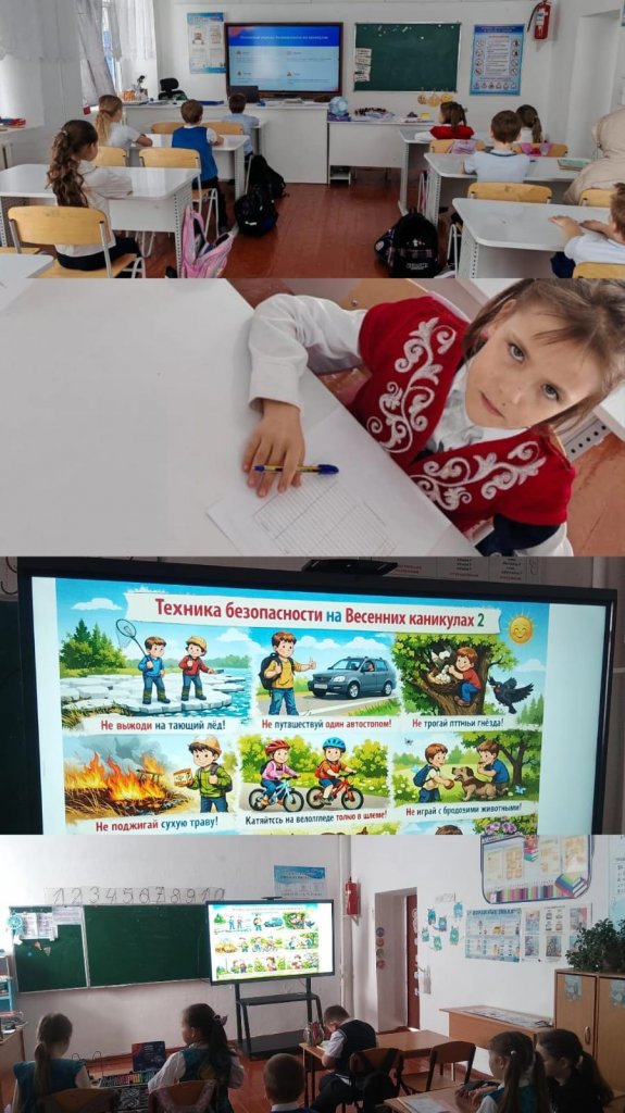 Көктемгі демалыс қарсаңында мектеп оқушыларымен қауіпсіздік техникасы бойынша әңгіме өткізілді, сондай-ақ қауіпсіз мінез-құлық ережелерін сақтау бойынша нұсқама ұйымдастырылды.