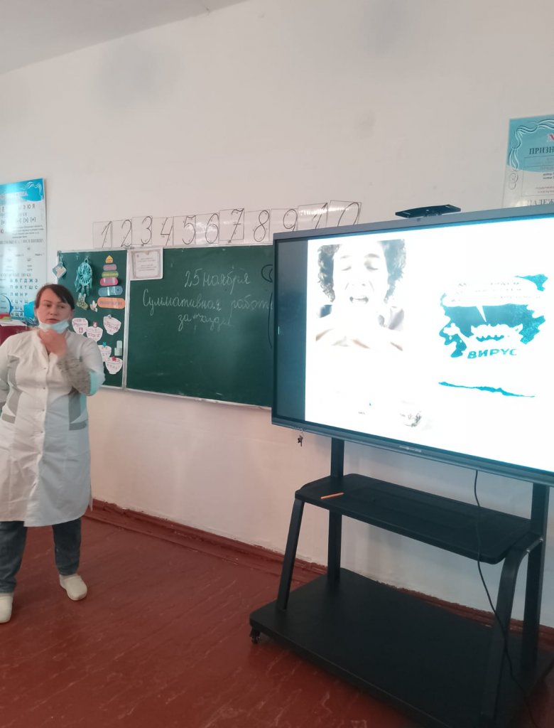 25 қарашада ауыл әкімдігінің фельдшері оқушылармен "ЖРВИ және суықтың алдын алу" тақырыбында профилактикалық әңгіме өткізді.