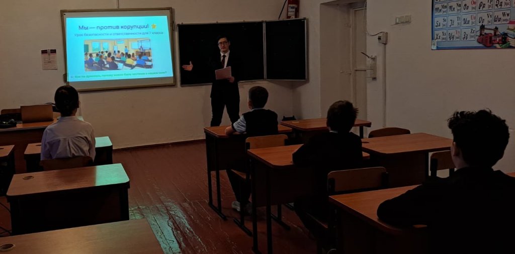 Сабақ барысында оқушылар сыбайлас жемқорлықтың не екенін, оның қоғам мен мемлекет үшін неге қауіпті екенін білді, сондай-ақ адалдық, жауапкершілік және заңды сақтаудың маңыздылығын талқылады.