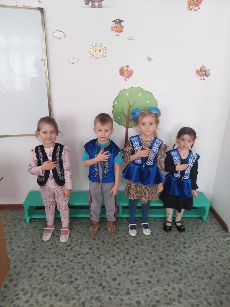 "Солнышко" шағын орталығының апта сайынғы іс-шаралары аясында тәрбиеленушілер Қазақстан Республикасы Мемлекеттік Гимнін орындайды, мемлекеттік рәміздерге деген патриотизм мен құрмет сезімін қалыптастырады.